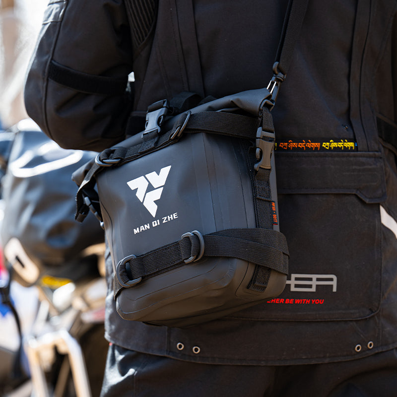 MAN QI ZHE Motorcycle Bumper Bag - 9L Capacity, Hypalon Fabric, IPX6 Waterproof, Quick Release