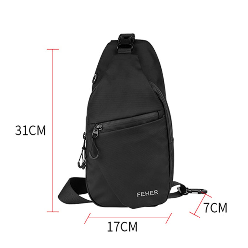 Brand: FEHER | Model: BT002 Chest Bag | Size: Approx. 31L x 17H x 7W cm | Material: 900D Oxford Cloth | Color: Midnight Black / Starlight Silver | Suitable Season: All Season