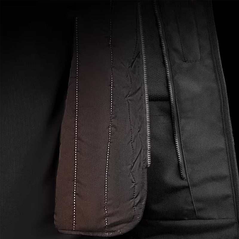 【All-Weather Ready】600D Oxford outer + 1000g cotton lining + 210T waterproof nylon inner. A versatile 3-layer system for wind, rain, and changing temperatures.